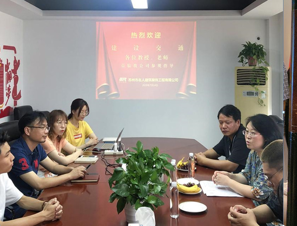位于苏州工业园区若水路的苏州清风装饰营造有限公司总部,王鐔震总经理与来访的环艺系两位进行了交流。清风企业学院是校企在2017年6月底成立,已经培养了60多位学生,目前学生已经就业与苏州地区各大装饰公司。陈主任对清风装饰近几年对苏建交环艺系在现代学徒制方面给予的大力支持表示感谢,希望通过本系校企的交流,对今后的现代学徒制如何开展提供更加宝贵的建议。王总多次参与我系的期末作品展、人才培养方案研讨会活动,对环艺系七年的教育教学改革非常了解,他认为环艺系的系列改革走在苏州高职院校的最前列,解决了学生与企业无缝对接的难题,学生的专业能力得到企业导师的一致赞许,教学改革非常成功。希望在人才技能水平提升的同时更多关注学生的职业素养问题、开展学生的挫折教育和吃苦耐劳精神的培养。裴老师认为王总提出的人才素养问题非常重要,将在修订人才培养方案时候更多的进行考虑。