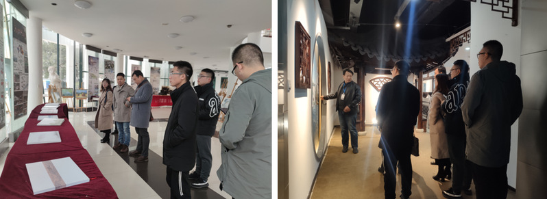 曹留峰副院长一行在许松老师带领下首先考察了建筑实训楼展出的17级项目课程期末作品和江南文化传承技艺馆,江苏工程职业技术学院老师们对我系实训基地的建设和期末课程作品赞赏有加。