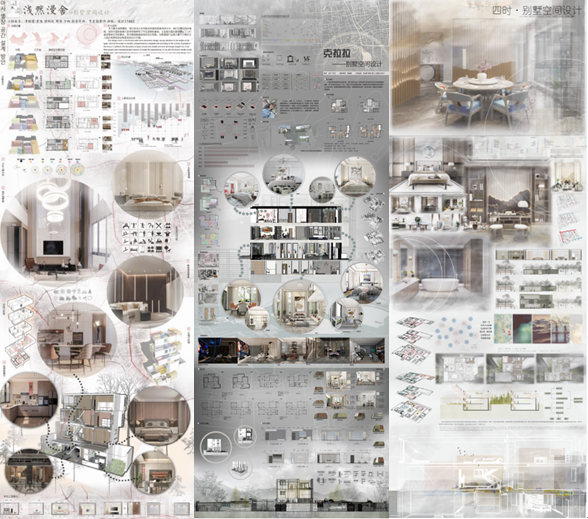 本次课程由曾慧颖、吴雨琦、沈雪涛、王茵茵四位教师共同授课,本课程按照“五位一体教学模式”课程改革的要求,改变以往虚拟甲方的形式,导入真实设计项目,寻找真实的甲方,提出真实的要求。学生通过4-5人的小组合作完成平面设计、效果图设计以及动画、展板展册的制作,最终满足甲方的需求。帮助学生提前实行岗位需要,并且用室内+景观庭院结合方式引导学生将室内外结合进行设计,提高学生的专业技能以及职业综合素养能力,为从事别墅等改善型住宅行业打下基础。(图/文曾慧颖)