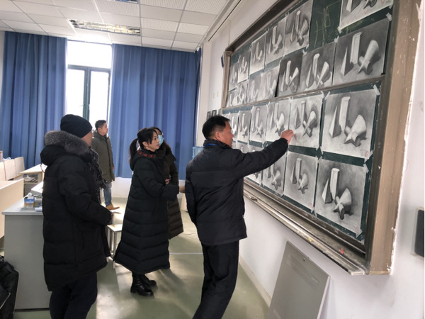 本场考试对素描基础理论考察的同时,实践考核以临时抽题的形式确定实践考试选题,并通过多媒体投影进行展示。在三个小时的考试过程中,五个班班级同学都拿出最高水平,将所学之素描知识和绘画技巧全部展现在画面上,充分体现出我系勤奋好学、精益求精的学习氛围。经过一场你追我赶的紧张比拼后,同学们按照考试要求分班级将考试作品张贴到考场的指定位置,严阵以待系部各位专业老师的点评。