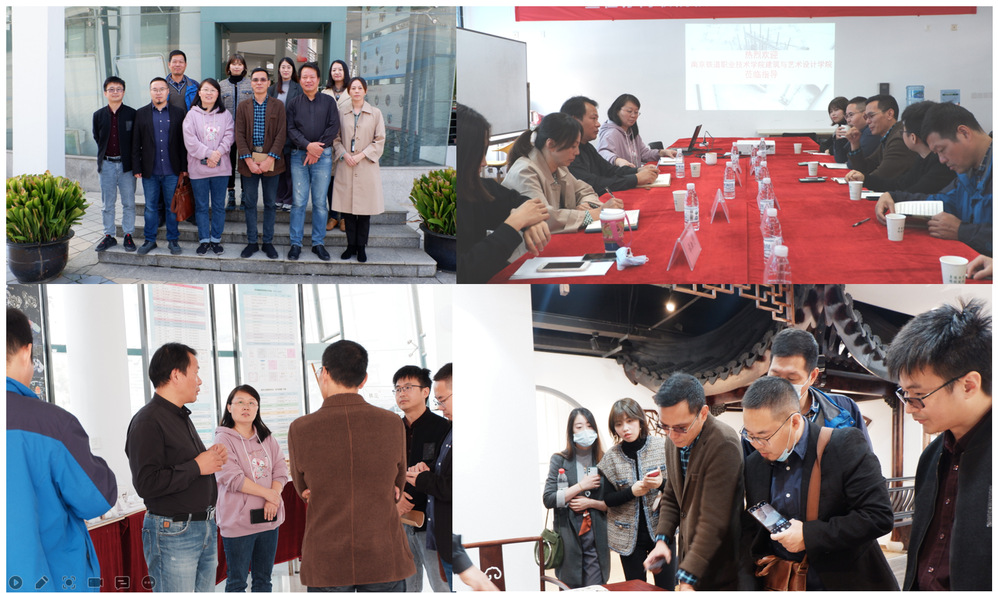 首先来宾参观位于B楼一楼到三楼的学生作品展、江南建筑木雕展示馆和海绵城市展示中心,就目前实训室建设、专业教学的形式等进行了探讨交流。随后在B204双方进行了专业建设研讨活动,金旭东院长介绍了建筑与艺术学院专业建设、系部规划和师资情况以及本次来访的目的,希望双方能够就技能大赛、教学大赛和课程改革等方面与环艺系展开交流。