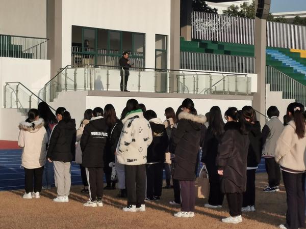 12月6日清晨,环艺系所有师生迎着朝霞陆续来到操场,参加第十五周的升旗仪式,国旗班同学手持鲜艳的五星红旗,等待升旗仪式的开始。伴随着庄严的国歌声,五星红旗在学生们的注视中,沐浴晨曦冉冉升起,迎风飘扬!