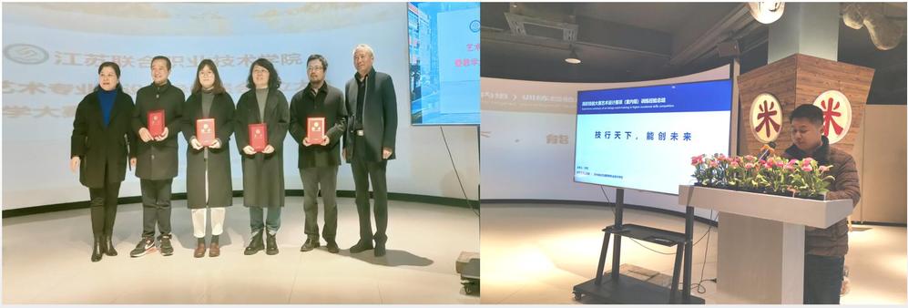 我系许松老师多年是江苏省高职院校建筑装饰应用技术的金牌教练,作了题为《2021年高职院组大赛和2022年联合院技能大赛艺术设计专业选拔赛经验分享》的专题讲座,他首先从2021年省赛优秀作品和联院选拔赛经验总结入手,总结分析了大赛中获得一等奖作品的特点,提出在备赛中要关注方案的创新性、多样性、艺术性。其次,将2021年和2022年高职组艺术设计赛项的规程进行对比分析,解读研判此次大赛的重点观测考核方向,并建议参赛队应该关注训练中的实战模拟。最后,许老师从大赛的集训备赛角度分享了其在艺术设计大赛中的指导经验,并强调了大赛中师生团队文化建设的重要性,应与学生“共事”、“共情”、“共创”,才能师生协力,再创佳绩!