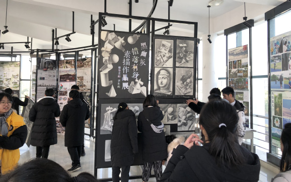 12月27日,在教学楼B楼三楼,环艺系首届5+2本科班一年级上学期《素描》课程写生作品汇报展顺利开展,展板共19张。