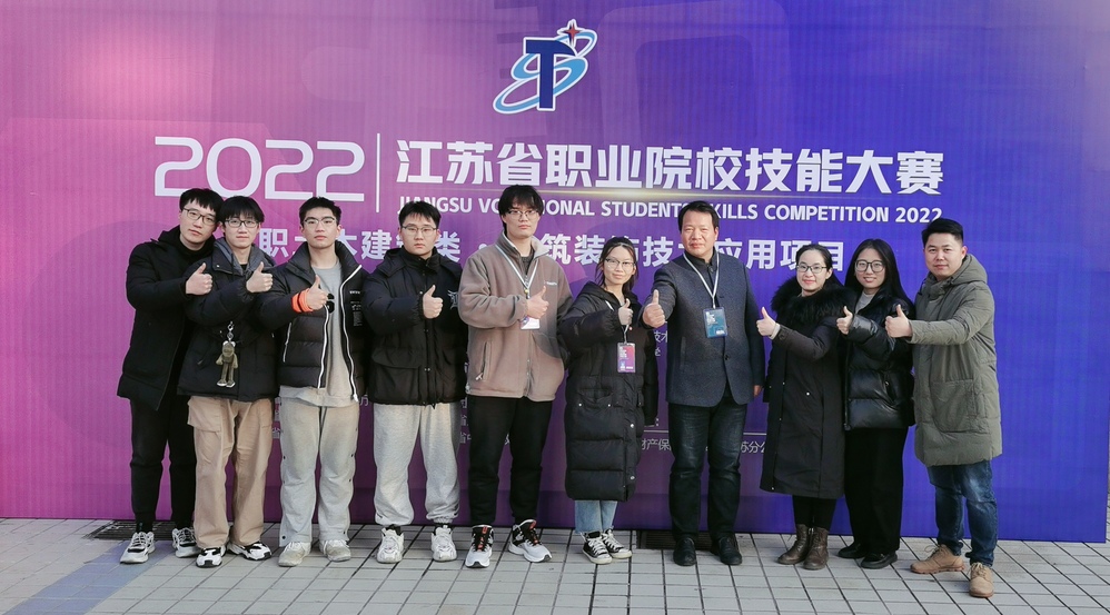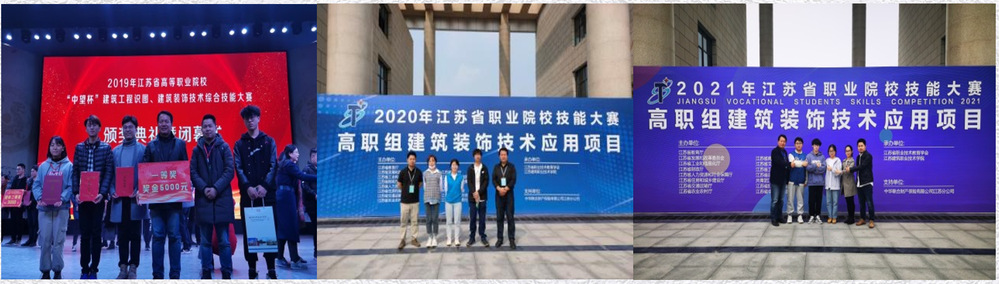 1月14—15日,2022年江苏省职业院校技能大赛高职土木建筑类“建筑装饰技术应用项目”在南通职业大学拉开帷幕,来自全省内44所高职院校88名参赛选手参加了本次比赛。经过激烈比拼,由我校环境艺术工程系许松、杨晶晶两位老师指导的设计17401班王靖、设计18401班陈贝贝2位学生团队获得一等奖的优异成绩。这也是我系在该赛项2019年首次举办到2022年共4次的省赛中斩获的第四个一等奖,实现我系在该赛项的“四连冠”。
