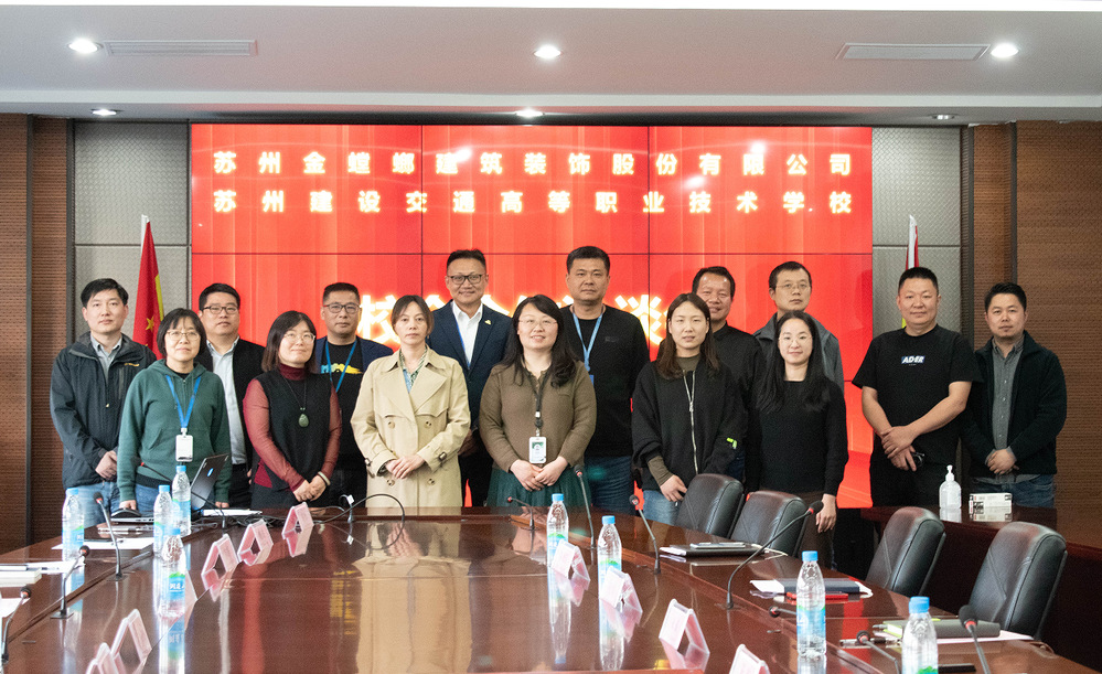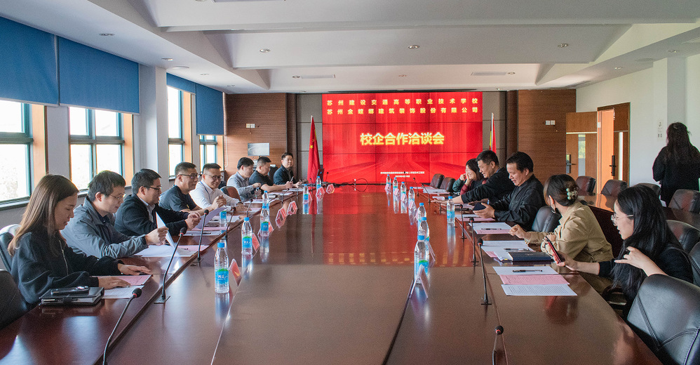随后,在行政楼311,随后,在行政楼311,副校长戎成、产教中心主任丛俊华主任、环境艺术系主任陈鑫主任、裴元生教授、武德芳老师、许松老师、系学工陶敏芳副主任等相关老师参加了洽谈会,许松主持会议。会议开始前,双方互相介绍了出席会议的领导。会议开始前,双方互相介绍了出席会议的领导。戎成副校长畅谈了苏建交建筑专业与金螳螂之间的历史渊源,对环艺系10年以来的改革作了肯定,希望在本次校企交流后再次携手深入校企合作。陈鑫主任从系部概况、专业改革、教学设施、教学实施、教学模式、专业成果几个角度对环艺系进行了较为详细的介绍。方文祥副总裁表示,本次带领团队参观,第一次领略了苏州建设交通环艺系培养人才的教学模式,看到学生的作品非常震撼,从企业方来看,更希望与学校深度合作,在校内培养更多的“金蓝领”人才,以本次合作为契机,形成学校与企业的无缝对接,努力。产教中心丛俊华主任就校企合作的经验及意义做了发言,希望能够在产教融合型企业和建筑大的专业上进行多方位合作。许松老师就关于成立“金螳螂BIM数字化研发中”的实施意向方案做了详细解读,提出具体实施路径及预期成果。BIM总院郭智伟院长表示对于实施方案的细节很满意,期望更长的合作时间。