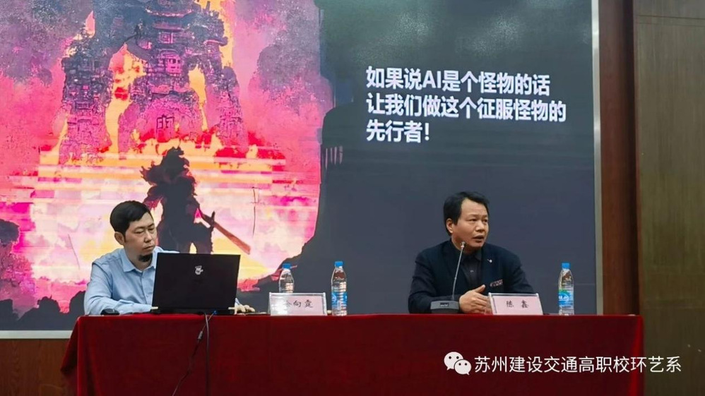 2023年4月13日,我校环境艺术工程系邀请了苏州设计行业先锋、苏州史蒂文艾迪展览设计公司负责人徐向霆总工程师来我校带来了一场主题为《AI时代--AI对设计专业的影响》的授课。会议由系陈鑫主任主持,环艺系教师和19、20级学生悉数到场。