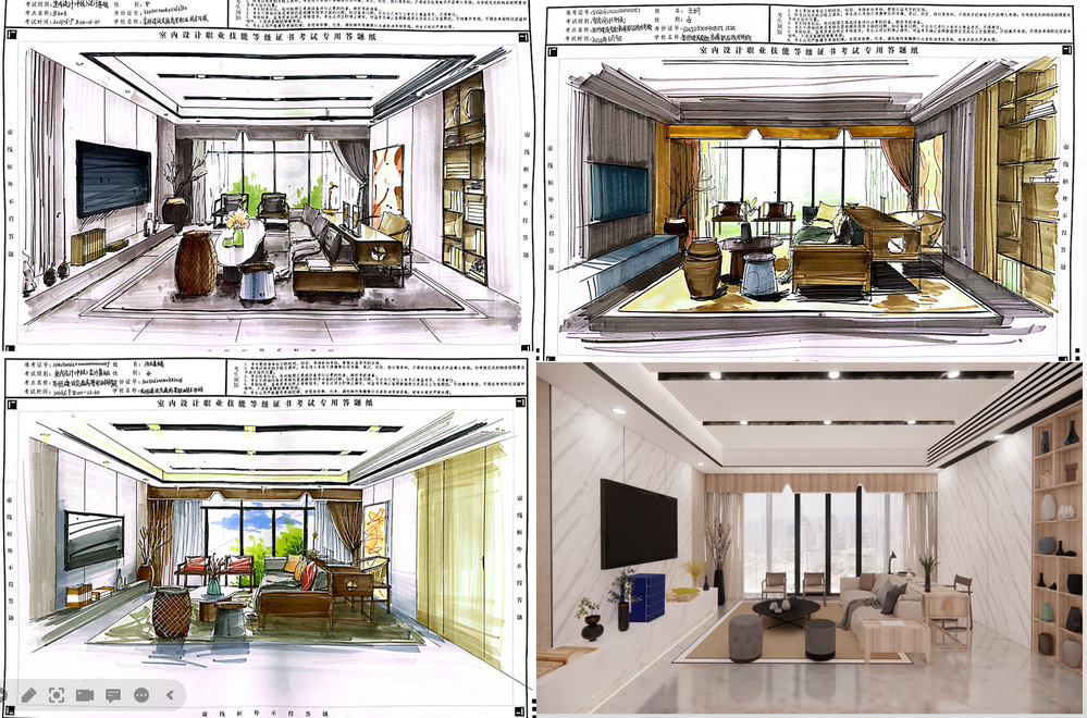通过本次考证,可以看出目前19级学生的整体专业能力与企业需求岗位是相匹配的,不管是CAD图纸绘制还是效果图绘制或手绘表现,均实现了岗课赛证的育人要求,整体达到了1+X室内设计中级技能等级的要求。但也发现部分学生在临场应变能力、手绘表现技法及软件的综合应用方面存在一定的问题。系部将结合问题研讨分析如何培养确保每位学生都能符合1+X室内设计职业技能等级要求,达到以证促教、以证促改、赛证合一的教学改革要求,满足行业企业技术创新需要高素质复合型创新型技术技能人才,实现人人成才。