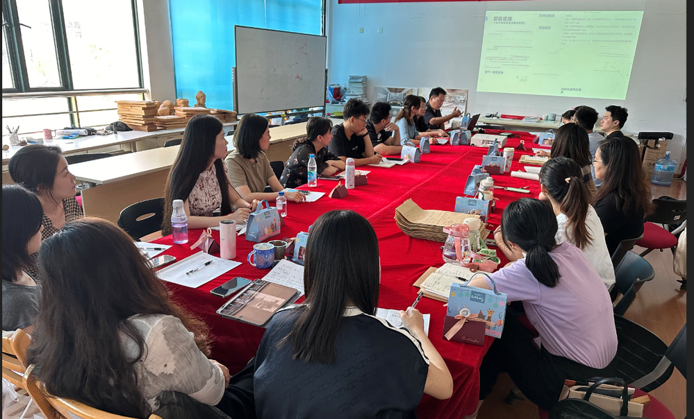议程二,教学大赛艺术一等奖获奖团队主讲顾朦老师汇报了一下一等奖的准备过程和8分钟的实施报告展示,一等奖团队三位老师也进行了补充。其他老师对一些疑问进行提问交流。