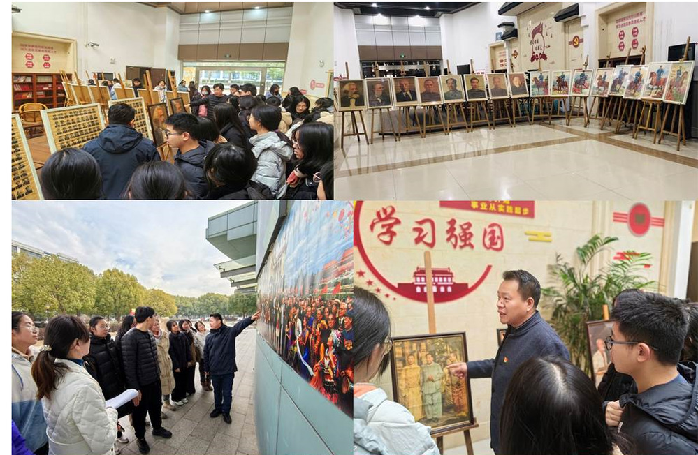 本次展览的主题是“毛主席和他的开国将帅们”,通过陈鑫院长多年精心收藏的大量老年画“以物述史”“以物证史”的方式,从多角度反映了毛泽东同志光辉的一生和领导中国人民建立新中国,开展社会主义建设事业的伟大功勋。中午到下午,全院各年级学生在教师的带领下陆续到报告厅中庭观看图片展,同学们也是第一次看到很多毛主席和他的开国元勋们的照片和画像,不断驻足仔细观看和认真听党员老师们对每一张图片背后故事的讲解接受一次革命传统教育的洗礼。