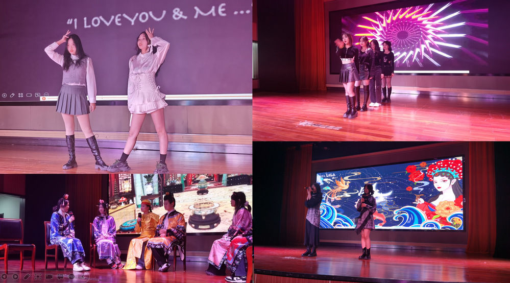 革命前辈的无私奉献就是希望后人能够幸福的生活,还有4天就要迎来了2024年新年,环艺学院的同学们带来了很多精彩节目,如歌曲《青虹》、《不见不离开+永不失联的爱》、《怀抱》、《九张机》、《刀马旦》,让大家在歌声中忘却所有的不如意;环艺23501班、环艺22501环艺23401班、环艺21401班、设计20403班,带来了舞蹈串烧,展现当代大学生的激情洋溢的精神风貌;环艺22401的同学们为我们带来了校园中的甄嬛故事,带动了全场氛围,令人捧腹大笑;学生会的同学们还演绎了校园语言暴力的危害性,每一个节目同学们都付出很多,在文艺汇演中让全体师生耳目一新。